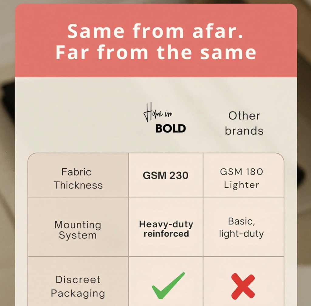 Made from 230GSM heavy blackout fabric thick enough that silhouettes, shadows, and light leaks are a non-issue. - Center Opening (3.5” W × 9.8” H)