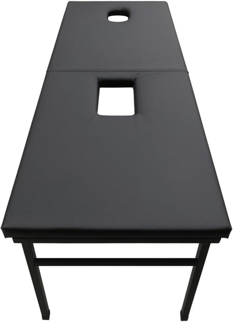 A tantric milking table is a specialized massage table designed to support the body face-down while allowing access through built-in openings. It’s used to enhance erotic massage, relaxation, and intimate connection.