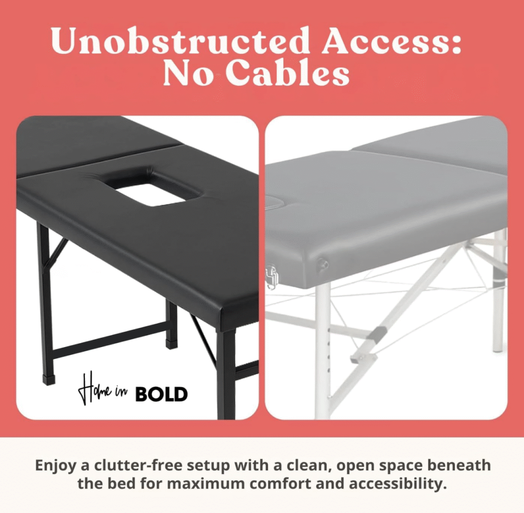 There’s room on top to fully relax and plenty of clearance underneath to move confidently without feeling cramped, rushed, or restricted.
